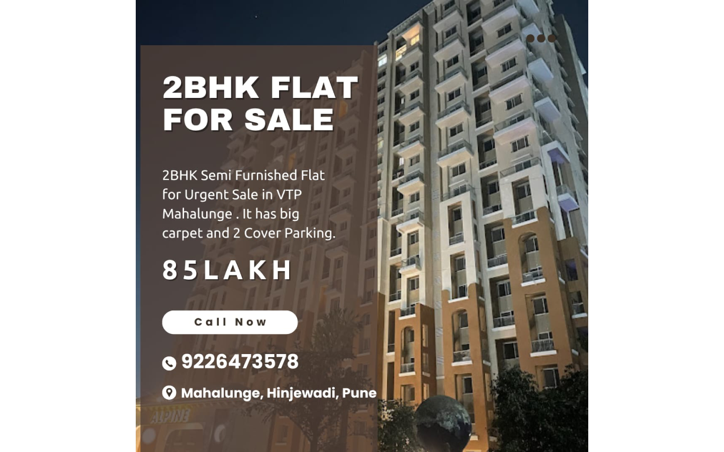This property is an excellent opportunity for those seeking a modern and convenient lifestyle in one of Pune’s most sought-after localities. Don’t miss out on this chance to make VTP Mahalunge your new home!