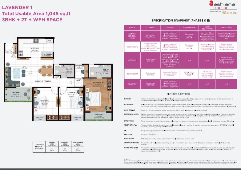 Lavender 1 (3 BHK) ₹1.08 crore 3 3 1045 sqft