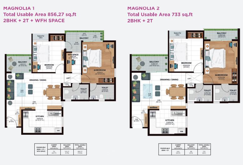 Magnolia 1 (2 BHK + 2T+ WFH Space) ₹83.54 lakh 2 2 856 sqft