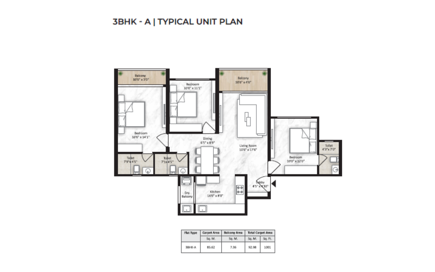 | 3BHK | Apartment | ₹3 | 3 | 3 | 1001 sqft |